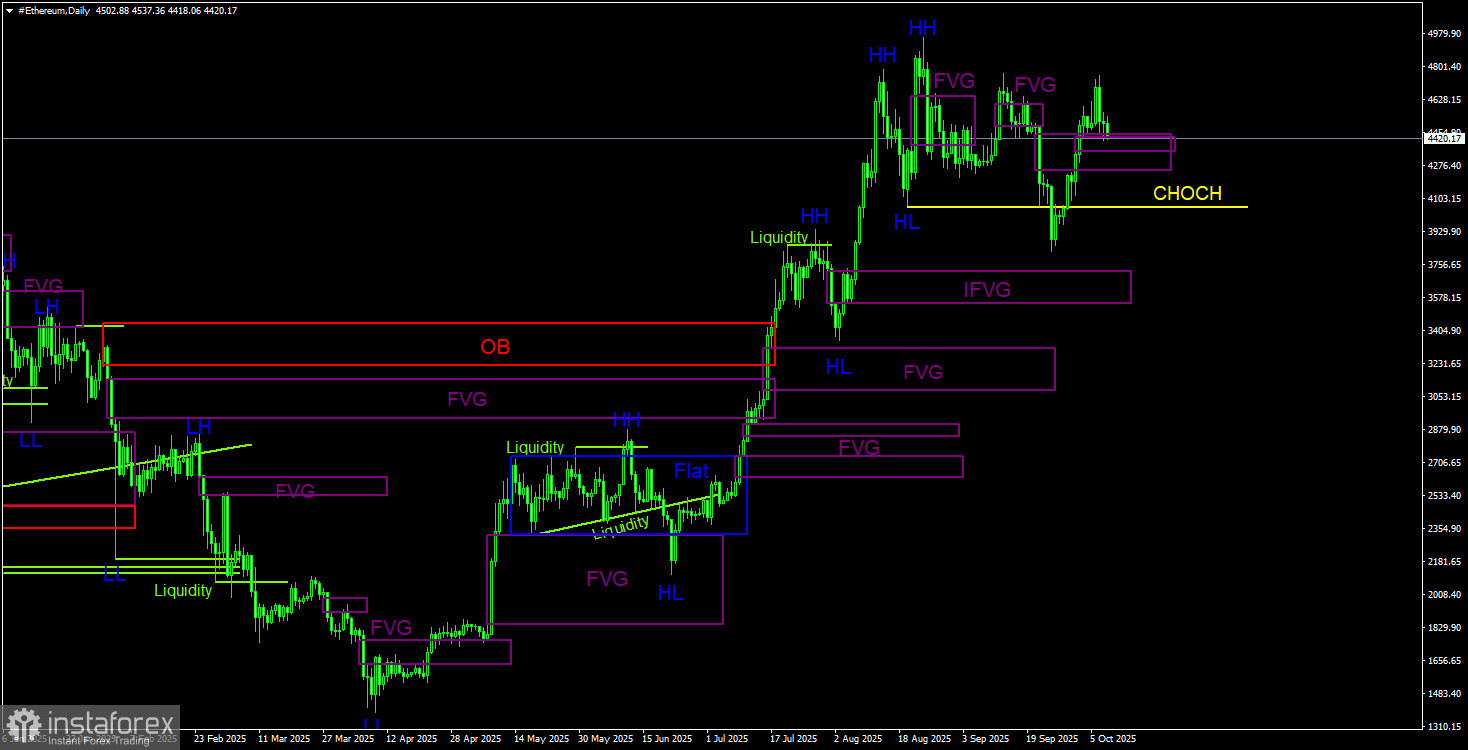 Торговые рекомендации по Эфиру(Ethereum) на 9 октября по системе ICT.