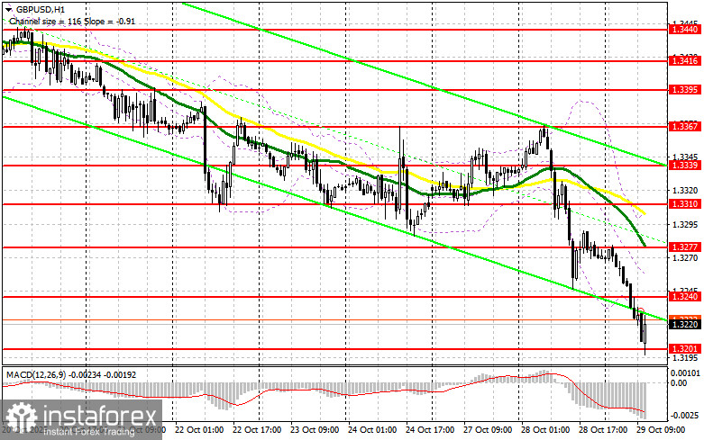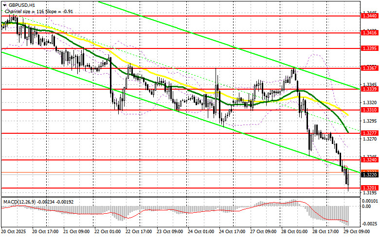 Хорошие данные по росту количества одобренных заявлений на получение ипотечного кредита и изменению объёма агрегата M4 денежной массы в Великобритании остановили развитие медвежьего рынка по фунту, что вылилось в небольшую восходящую коррекцию пары GBP/USD. Во второй половине дня все будет зависеть от решения FOMC по основной процентной ставке, которая наверняка будет снижена на четверть пункта, а также от сопроводительного заявления FOMC и пресс-конференции Джэрома Пауэлла. Выжидательная позиция политика может сыграть на стороне покупателей доллара. В случае медвежьей реакции на комментарии Пауэлла давление на пару вернется. Действовать в таком случае буду лишь после формирования ложного пробоя в районе новой поддержки 1.3201, образованной по итогам первой половины дня. Это даст точку входа в длинные позиции в расчете на обновление уровня 1.3240. Прорыв с обратным тестом сверху вниз этого диапазона приведут уже к новой точке входа в длинные позиции с перспективой выхода на 1.3277. Самой дальней целью окажется область 1.3310, где собираюсь фиксировать прибыль. При сценарии снижения GBP/USD и отсутствия активности со стороны быков на 1.3201 во второй половине дня, давление на фунт только возрастет, что приведет к более крупному снижению пары. В таком случае лишь формирование ложного пробоя в районе 1.3172 будет подходящим условием на открытие длинных позиций. Покупать GBP/USD сразу на отскок собираюсь от поддержки 1.3142 с целью коррекции в 30-35 пунктов внутри дня.