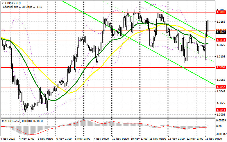 Фунт провалился после новостей о том, что ВВП Великобритании в сентябре этого года сократился на 0,1%, и оказался хуже прогнозов экономистов. Также сократилось и промышленное производство, что позволяет сделать выводу об неутешительном положении британской экономики. Однако падение быстро сменилось ростом. Теперь во второй половине дня многое будет зависеть от заявлений представителей FOMC Альберто Мусалема и Бет М. Хэммак, так как никакой другой статистики по США нет. В случае коррекции пары действовать будут в районе ближайшей поддержки 1.3133. Лишь после формирования там ложного пробоя можно получить точку входа в длинные позиции в расчете на рывок к уровню 1.3181. Прорыв с обратным тестом сверху вниз этого диапазона приведут уже к новой точке входа в длинные позиции с перспективой выхода на 1.3216. Самой дальней целью окажется область 1.3244, где собираюсь фиксировать прибыль. При сценарии снижения GBP/USD и отсутствия активности со стороны быков на 1.3133 во второй половине дня, давление на фунт вновь возрастет, что приведет к риску возврата медвежьего рынка. В таком случае лишь формирование ложного пробоя в районе 1.3086 будет подходящим условием на открытие длинных позиций. Покупать GBP/USD сразу на отскок собираюсь от поддержки 1.3052 с целью коррекции в 30-35 пунктов внутри дня.