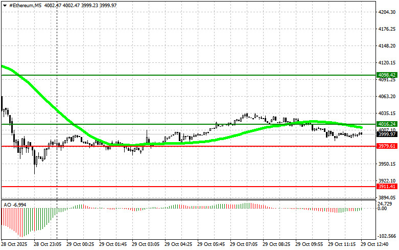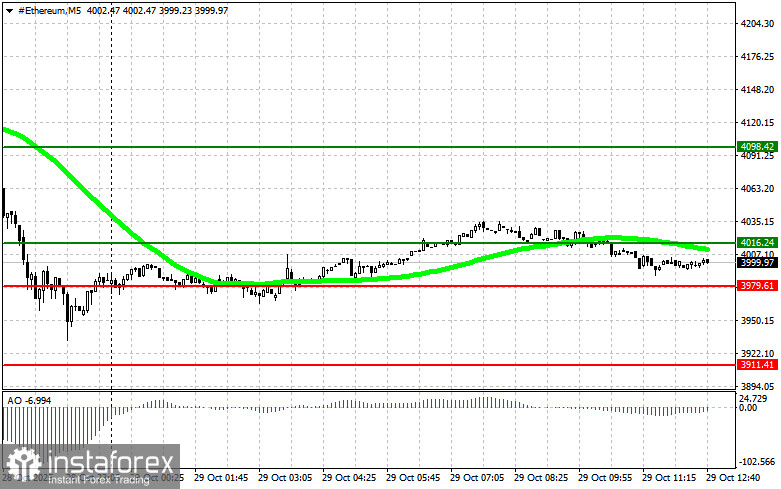 Сценарий №2: покупать эфир можно от нижней границы $3979 при отсутствии рыночной реакции на ее пробой в обратную сторону к уровням $4016 и $4098.