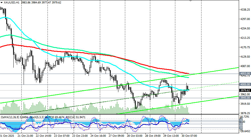 С технической же точки зрения выделяются ближайшие уровни сопротивления 4005.00 (ЕМА144 на 4-часовом графике), 4053.00 (ЕМА200 на 1-часовом графике) и поддержки 3945.00 (ЕМА200 на 4-часовом графике), 3900.00 («круглый» уровень).