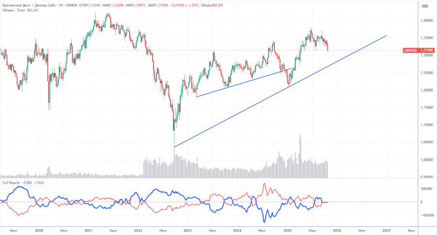 В 2025 году фунт очень сильно вырос, но следует понимать, что причина одна – политика Дональда Трампа. Как только эта причина будет нивелирована, доллар может перейти в рост, но когда это произойдет – не знает никто. Неважно, какими темпами растет или падает нетто-позиция по фунту. По доллару она в любом случае падает и, как правило, более высокими темпами.