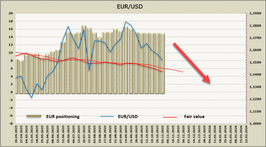 Расчетная цена уходит вниз, пятая неделя отсутствия данных CFTC вынуждает ориентироваться на неполные данные, которые не в пользу евро.